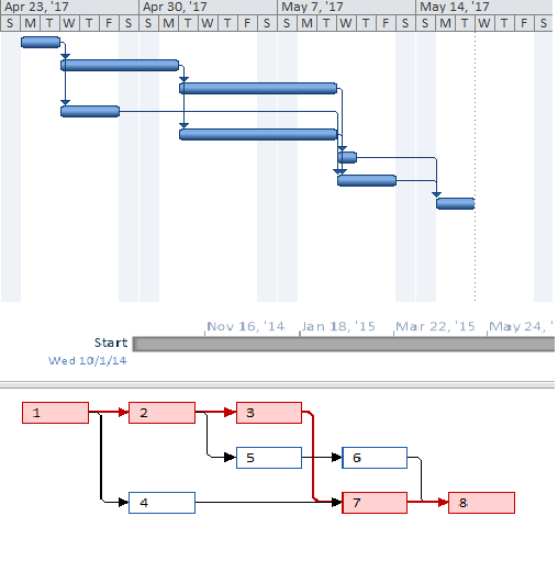 Critical path: 1-2-3-7-8